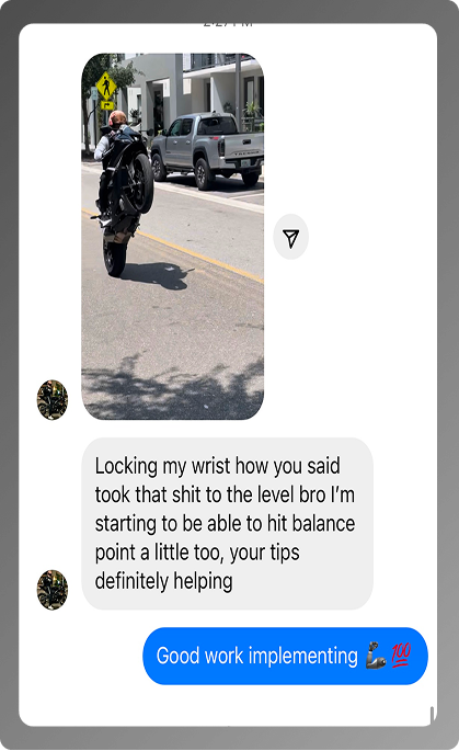 He slowed down and became determined to master wheelies, he tried teaching himself through trial and error — guessing, lots of close calls, and wasting so much time with little progress. After more than a decade of riding, growing up on dirt bikes he had nothing to show for… still couldn’t wheelie with control or confidence. He felt stuck, invisible, and frustrated.
