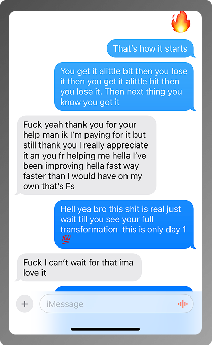 That depends on you. We give you the exact step-by-step system, the drills, and the feedback — but it’s on you to show up, practice, and apply what’s taught. If you follow the system, your control and confidence will increase. If you skip steps or don’t put in work, you’ll stay where you are. This program rewards discipline, not shortcuts.