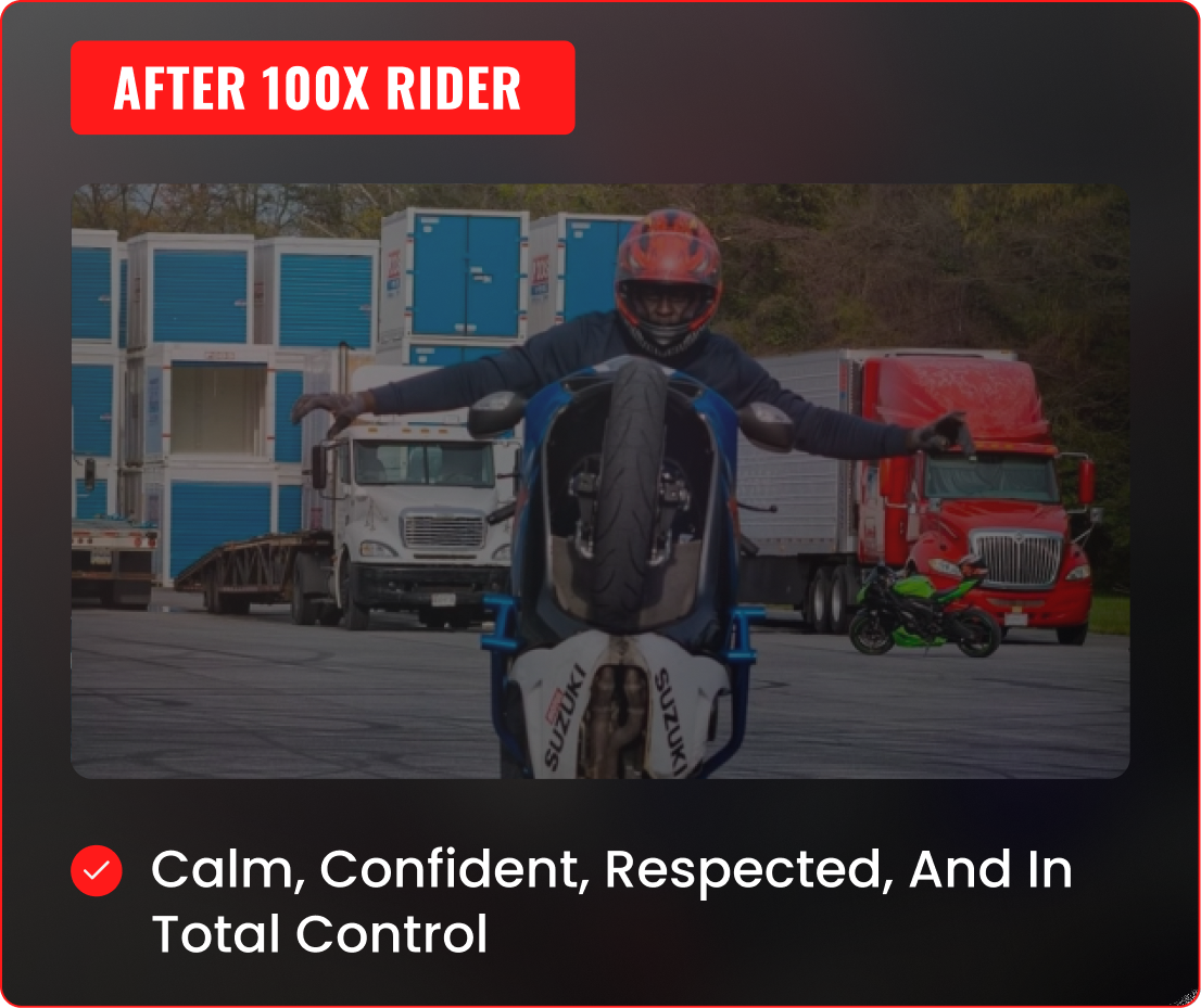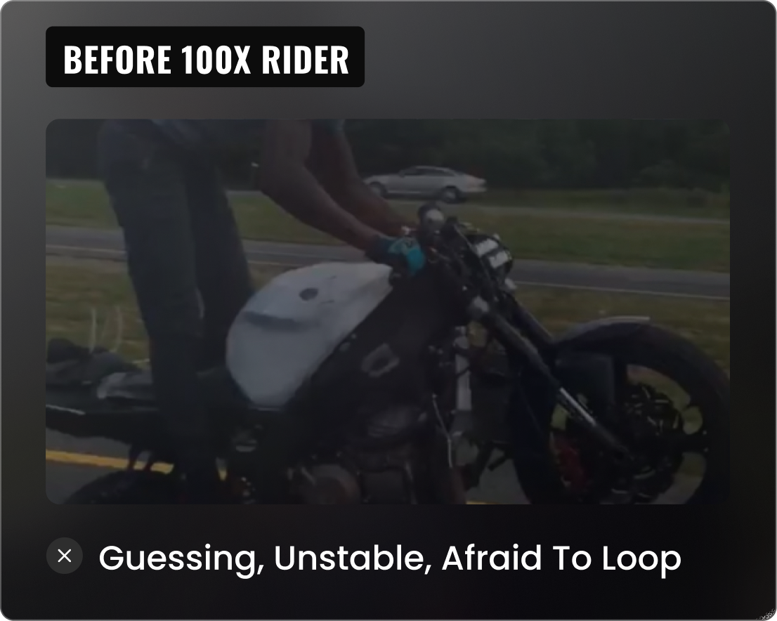 That transformation became his mission. Darius built 100X Rider to give every rider the same opportunity to skip the guesswork, ride safer, and gain the control and confidence they’ve always wanted.